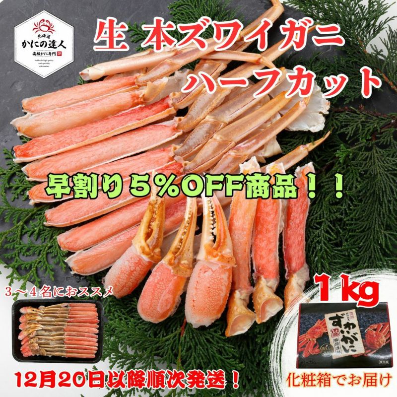 【年末早早割予約商品】生ズワイガニハーフカット 1kg入り