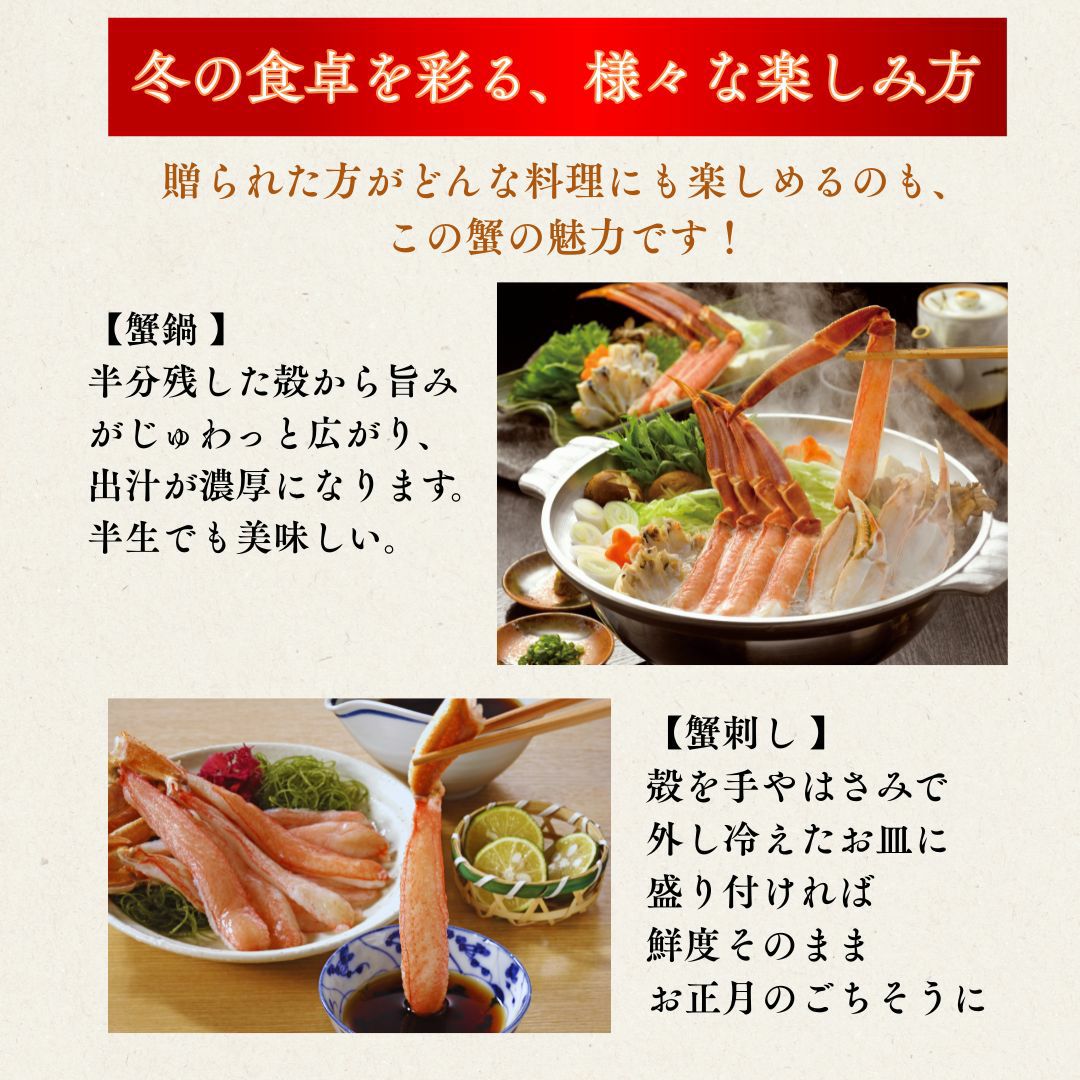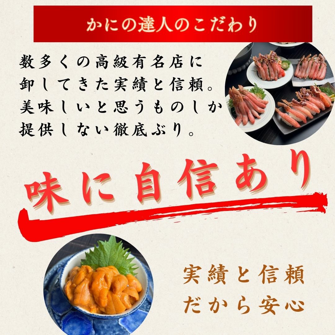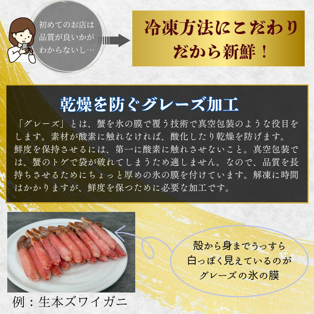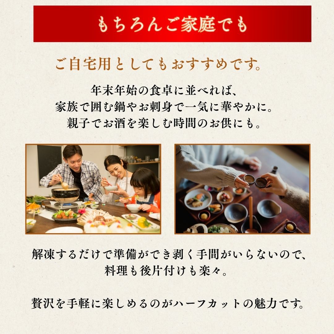他の画像を見る 刺身でも鍋でも。旨みを贅沢に楽しむ、使いやすいハーフカット生本ズワイガニ。 生本ズワイガニハーフカット 1kg入り(お刺身可能)|北海道直送 送料込み 沖縄県のみ送料別 クール便(冷凍) 当店特別価格 ¥ 9,980 税込 刺身でもしゃぶしゃぶでも楽しめる、北海道直送のハーフカット生本ズワイガニ1kg。 カートに入れる お気に入りに登録する