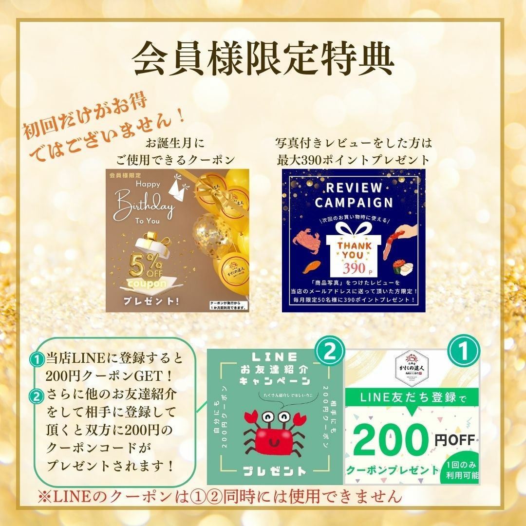 他の画像を見る 北海道直送。 甘み際立つ生ズワイガニを、刺身でもしゃぶしゃぶでも。 500gで贅沢な海鮮体験を。 【初回限定特価】生本ズワイガニ 500g(刺身OK・しゃぶしゃぶ用) 送料込み 沖縄県のみ送料別 クール便(冷凍) 特別価格 ¥ 6,400 税込 刺身でもしゃぶしゃぶでも楽しめる、甘み濃厚な生本ズワイガニ。 カートに入れる お気に入りに登録する